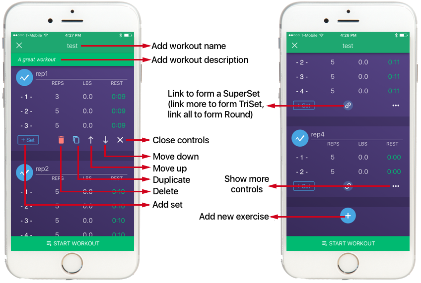Note: Rest time entered is the rest time BEFORE starting a set, not after.