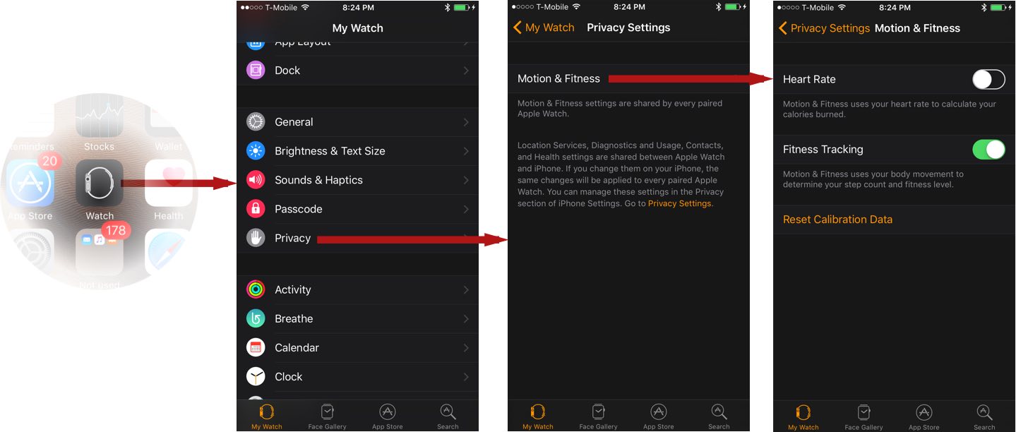 First of all, turn off the heart rate sensor. A golf game is considered a workout, and Apple Watch turns on the heart rate sensor by default. If you do not care about measuring heart rate while playing golf, go to the Apple Watch app on your phone, in the first tab, find Privacy->Motion & Fitness->Heart Rate, and turn it off. See screenshots below. This can typically save 50% of your battery, so we highly recommend it.